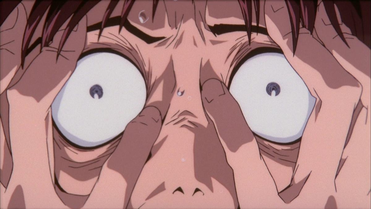 Few anime moments capture pure existential dread like Shinji Ikari’s mental breakdown face in Evangelion. His wide, unfocused eyes and slack-jawed expression perfectly convey absolute psychological collapse.