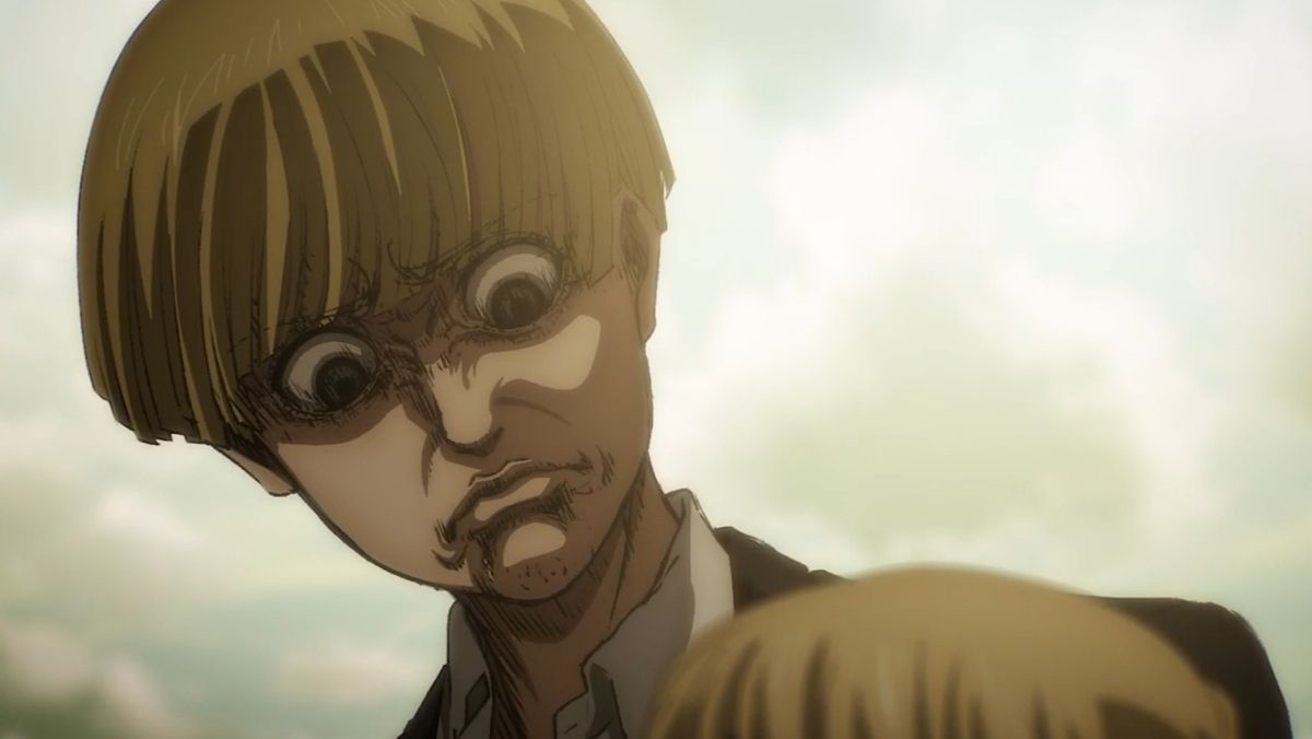 The face is so unnatural, with her wide, vacant eyes and grotesque expression, that it became one of Attack on Titan’s funniest yet most disturbing meme moments.