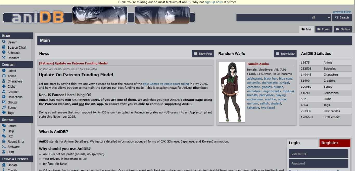 Still, when it comes to accuracy and depth, AniDB is unmatched. I often use it to double-check release histories or production credits that MAL occasionally overlooks.